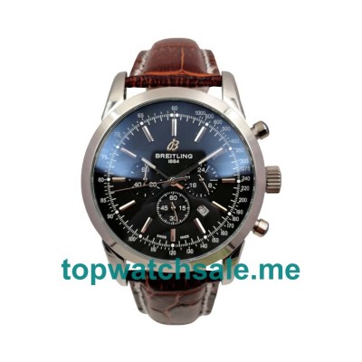 Top UK replica Breitling Transocean Chronograph watches are accurate with quartz movements, and the 1:1 best fake watches are modern with black dials and brown leather straps.