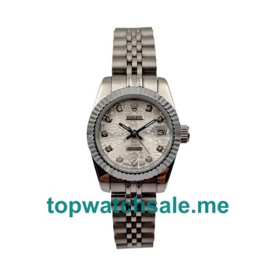 Buy luxury replica Rolex Lady-Datejust watches made of steel and white gold cases, and the top fake watches UK offer diamond hour markers on the silver dials.