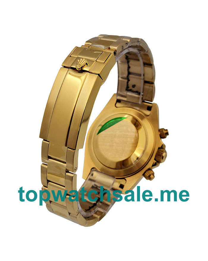 Luxury online replica Rolex Daytona watches are created with gold cases and gold bracelets, and the AAA UK fake watches precisely show the chronograph for men.