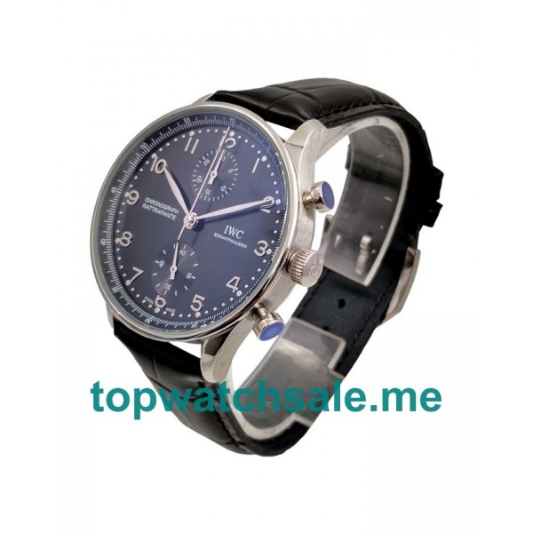 High quality IWC Portugieser replica watches show clear Arabic numerals on the black dials, and the 1:1 UK fake watches offer men the comfortable wearing with black leather straps.