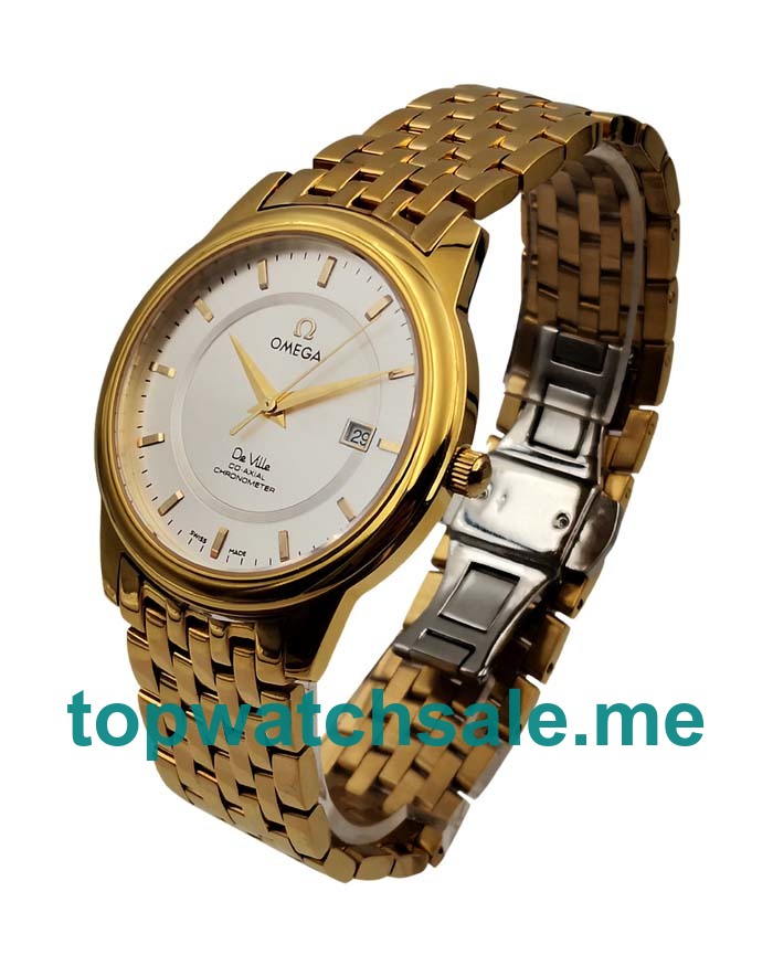 UK luxury replica Omega De Ville Prestige watches are composed of gold cases and gold bracelets, and the 1:1 top fake watches provide men silver dials online.