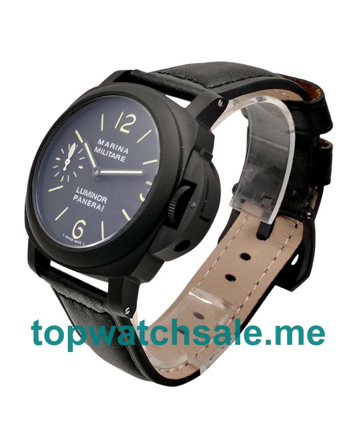 High quality replica Panerai Luminor watches are created with black steel cases for men, and the UK fake watches online shop are cool with black dials and black crocodile straps.