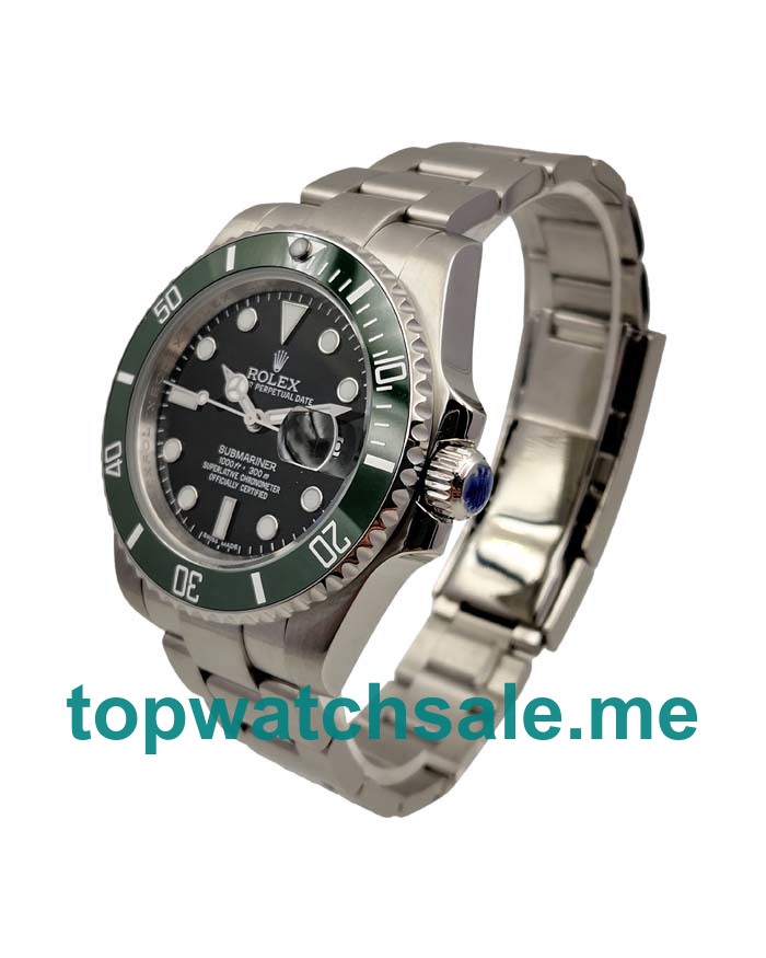 1:1 UK Rolex Submariner replica watches are distinct with green ceramic bezels, and the AAA fake watches for sale are clear with luminescent coating and practical with date indication.